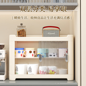 ウォーターカップホルダーカップ収納ラック透明縦型防塵カップホルダーホームデスクトップ大容量二層ティーカップキャビネット