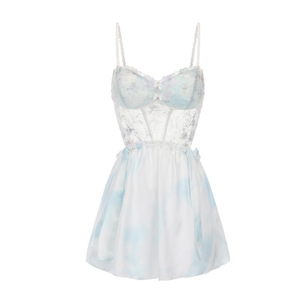 Guiruo ラグジュアリー シルキー サテン パジャマ ディープ V プッシュアップ 胸パッド付き ホット バックレス サスペンダー スカート 大きいサイズ セット A5152