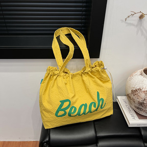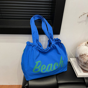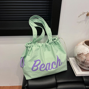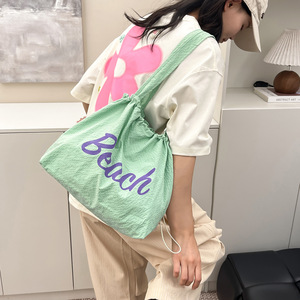 韓国版の新しいレタープリントカジュアル大容量トートバッグ軽量旅行多用途レイジースタイル巾着ショルダーバッグ