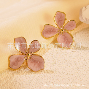 クロスボーダーヨーロッパとアメリカの新しいスタイルの軽い高級カラフルなフラワーイヤリング、優しくシンプルでファッショナブルな釉薬フラワーステンレススチールイヤリング女性用