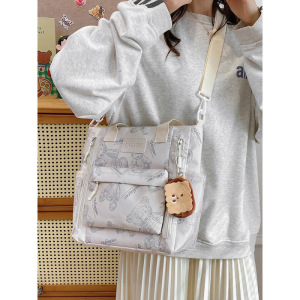 大容量通勤ショルダーバッグ日本インかわいいクマレトロトートバッグ学生クラスの家庭教師クロスボディバッグ