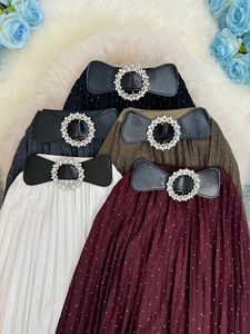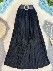 ライトラグジュアリーでヘビーデューティーなスタッズ付きプリーツスカート、夏用の薄手のカジュアル通勤万能ハイウエストスリムミドル丈スカート