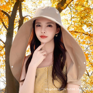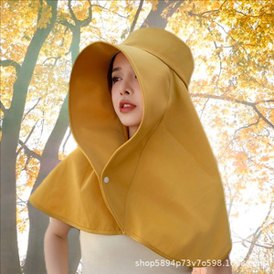 新款纯色盖头渔夫帽帽子雪纺防晒帽子方便头巾围巾披肩筒帽披风帽