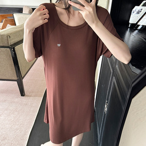 胸パッド付きの愛の刺繍ナイトガウン、春夏の新しい半袖弾性痩身ホームウェアパジャマ、屋外で着用できるミドル丈スカート