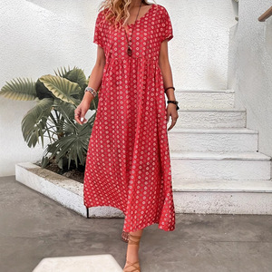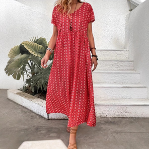 クロスボーダーヨーロッパとアメリカのアマゾンサマーロングドレス2025ホットセール新作半袖ドレス独立系