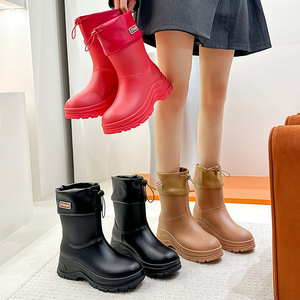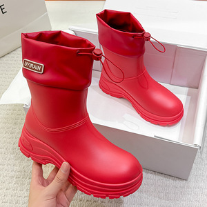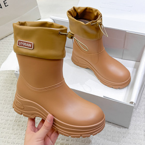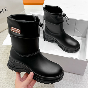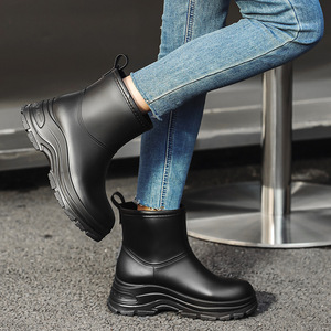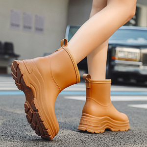 跨境时尚中筒雨鞋女防水口百搭防滑厨房胶鞋户外学院风舒适雨靴