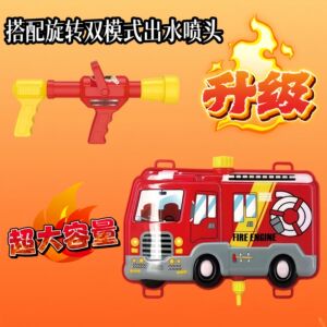 アップグレードされた子供用消防車バックパック水鉄砲おもちゃビーチ遊び水引きダブルノズル水鉄砲おもちゃ
