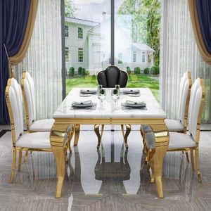 意式轻奢现代简约不锈钢家用大理石餐桌饭桌岩板长方形餐桌椅组合