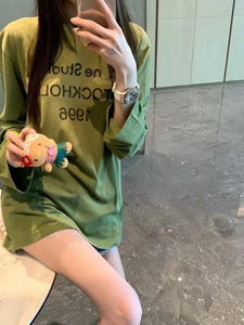 acne1996 新しいグラデーショングリーン長袖 T シャツ 25 新しい深セン南油ハイバージョン男性と女性同じスタイル