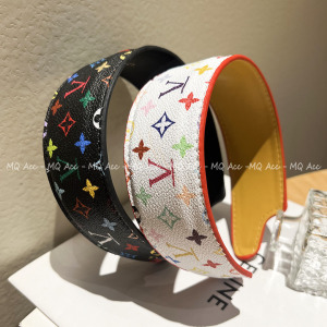 レトロな気質のL字型ヘアバンド、白黒三色レザーヘアバンド、つば広ヘッドバンド、カラープリント老眼ヘアアクセサリー、ヘッドバックル