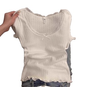 原版面料清新甜美2025夏季新款纯欲短袖设计辣妹短款修身上衣女潮