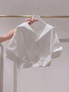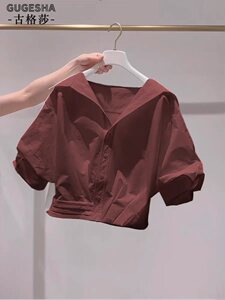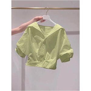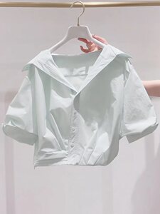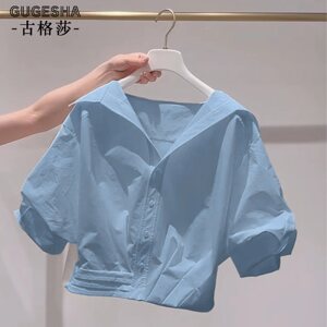 Wow~フランスの美しい女性用半袖トップス、新しい夏スタイル、レイジースタイル、年齢を軽減するラペルパフスリーブショートシャツ