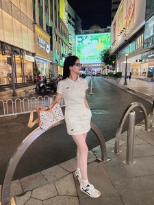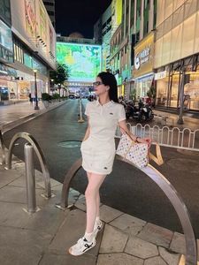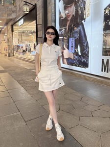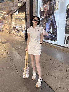 韓国風デザインのポロカラー半袖トップスとハイウエストスリムAラインスカートのセットがとても美しい夏のセットです。