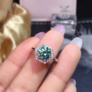 新しい豪華な気質ブルーグリーンリング女性用プリンセススクエア象嵌雰囲気1カラットブルーグリーンストーンリング