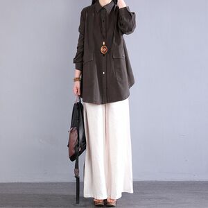 暗红上衣+麻本裤