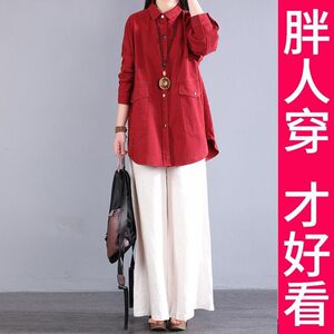 200斤高档大码春款衬衫遮肉套装长袖中长款衬衣外套女2025新款