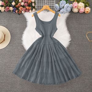 法式吊带连衣裙女夏高级感赫本风小个子气质欧美外贸镂空针织裙子