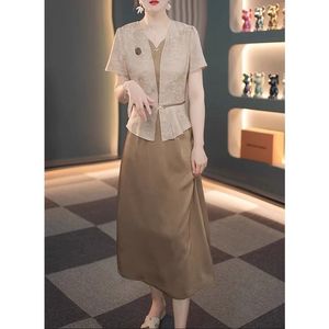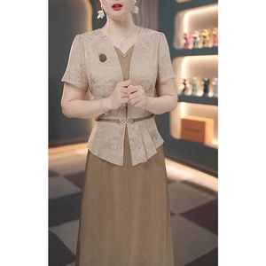 100kg ハイエンド大きいサイズライトラグジュアリーハイエンド V ネック半袖ドレス女性のための 2025 夏の新しいママ人気のドレス
