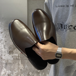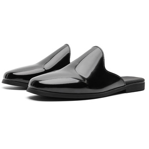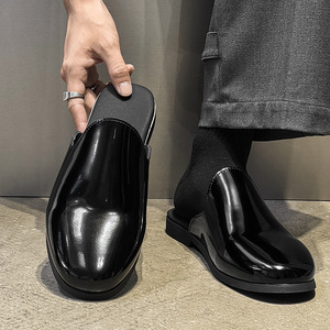 レイジー通勤カジュアル包頭スリッポン レイジーワンステップフラットアウトドアボーケンシューズ 25534 パテントレザーブラウン-J
