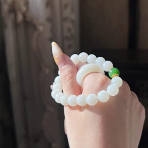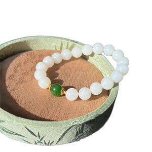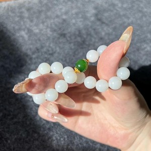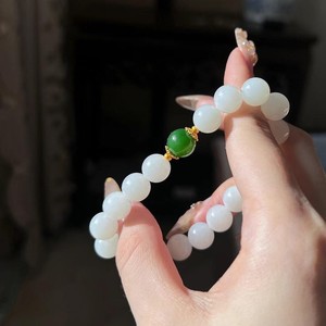 天然ホータン翡翠ロシア産羊脂肪白ブレスレット、高脂肪白10mm、厳選された繊細な質感、油性でワックス状の工場