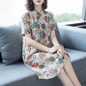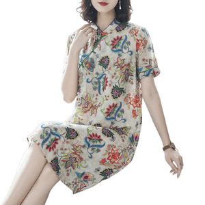 ヘビーウェイト/シルクドレス、ウエスタンスタイル、大きいサイズ/シルク改良チャイナドレス、ミドル丈スカート、カラーマッチング
