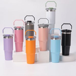 新しい 304 ステンレス鋼アイスカップ屋外車 30 オンス車のカップ二重層大容量魔法瓶カップストロー付き