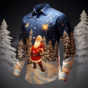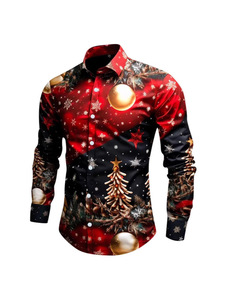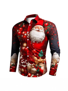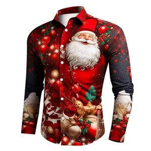 クロスボーダー 2025 ヨーロッパとアメリカの人気のメンズサンタクロースプリントシャツ長袖メンズカジュアルファッション多用途トップ