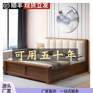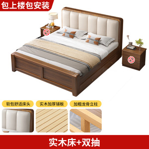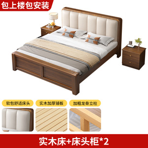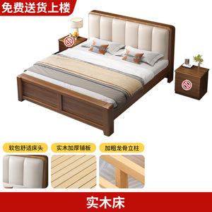 中式床实木床主卧2025新款1.8双人床原木软包家用卧室1.2米单人床