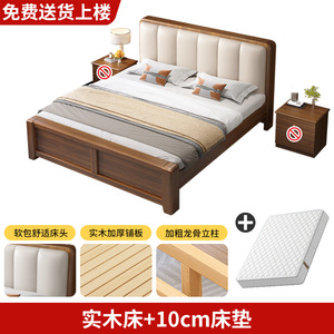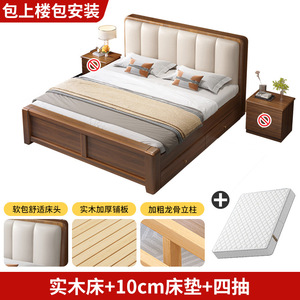 【送货上楼】实木床+10cm床垫+床头柜*1+双抽