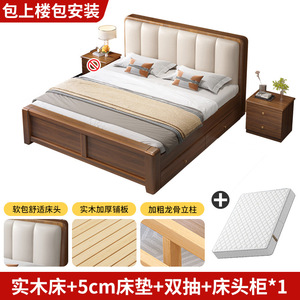 【送货上楼】实木床+5cm床垫+床头柜*1+双抽