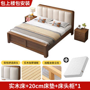 【送货上楼】实木床+20cm床垫+床头柜*1+双抽