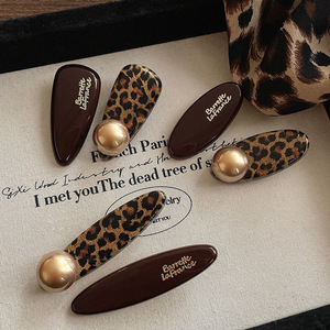 女性用ヒョウ柄チョコレートヘアピン、レトロカモノハシヘアピン、高級ヘアピン、エレガントな前髪サイドヘアピン、ヘアアクセサリー