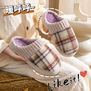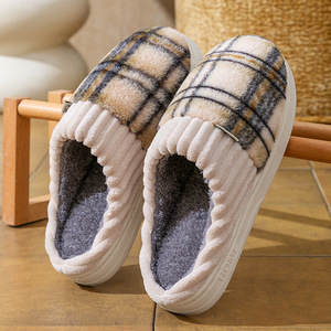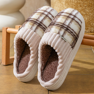 2025 新しい綿スリッパ女性のための秋と冬のカップル厚い底プラスベルベット厚みのある耐摩耗性ホーム暖かい綿スリッパ男性のための