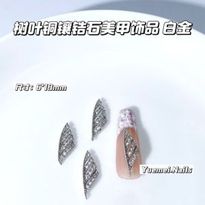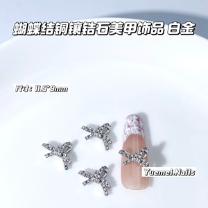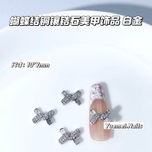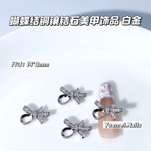跨境新款蝴蝶结铜镶锆石饰品银色多款白金美甲饰品轻奢风指甲配饰