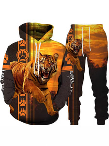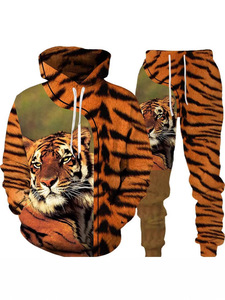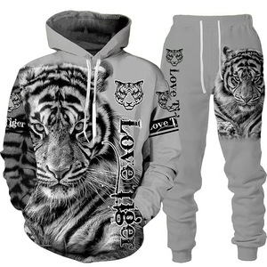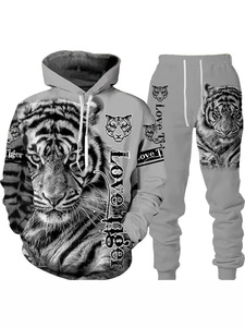 2025 クロスボーダー新スタイルタイガー 3D プリントフード付きスウェットシャツスーツ春と秋ヨーロッパとアメリカのメンズスウェットシャツ女性ヨーロッパとアメリカの貿易