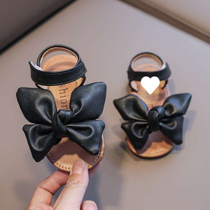 女の子サンダル 2025 夏の新ソフト底子供靴弓ノンスリップビーチシューズ少女プリンセスサンダル