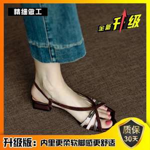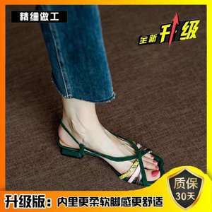 手作り〜店主の自作〜レトロなカラーブロックフィッシュマウスサンダルレディース夏太ヒール織細ストラップローヒールローマンシューズ