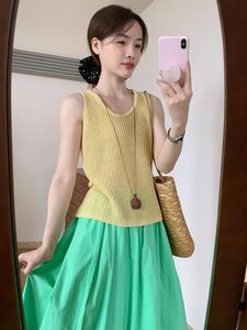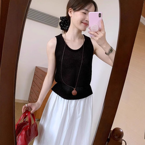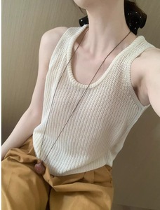 2025 新しい夏のノースリーブアイスシルクキャミソール女性のデザインバックボタンニット中空スタイルトップ