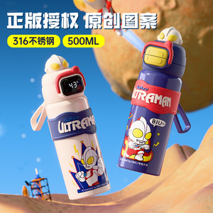 ウルトラマン漫画子供用魔法瓶カップ 316 ステンレス鋼食品グレードストローカップスマート温度表示ダブルドリンクバウンスカップ