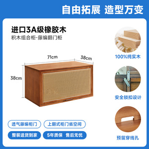 籐製跳ね上げ扉キャビネット(磁気吸着) - チェリー材色