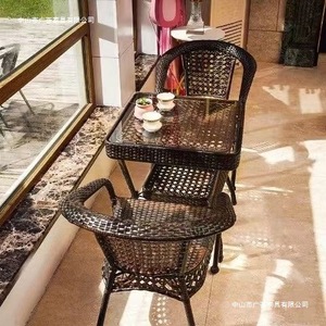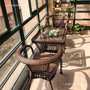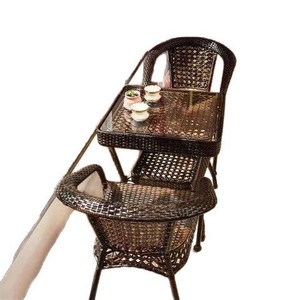 籐椅子 3 点セット ティーテーブル ホームバルコニー 小さなテーブルと椅子 シングル背もたれ椅子 アウトドア レジャー テングチェア ティーテーブルの組み合わせ