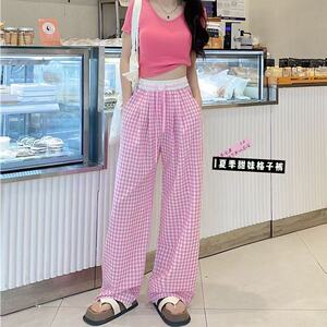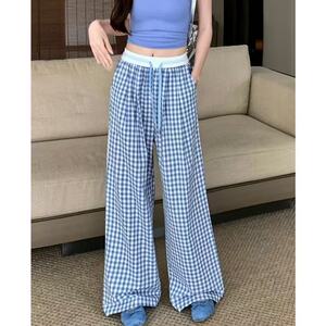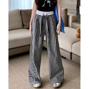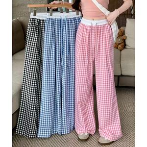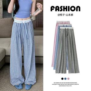 格子阔腿裤女2025春夏新款慵懒设计感裤子宽松休闲直筒垂感拖地裤