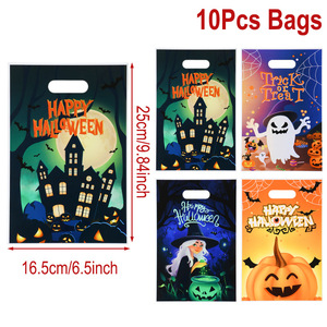 ハロウィンミックスポータブルギフトバッグ、片面3フィラメントパールフィルム、1パック10枚入り