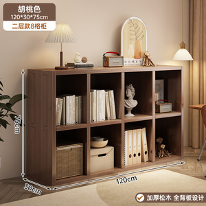 实木书架落地置物架胡桃色格子柜客厅收纳储物柜靠墙矮柜飘窗书柜