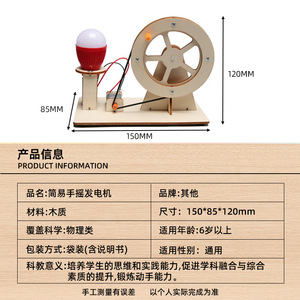 科学实验手摇发电机儿童diy木质物理学校教具科技小制作科教玩具