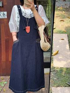 Shuangtian 2025 新しい夏のファット mm プラスサイズのドレス 100kg レースデニムサスペンダースカート yc270