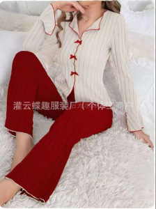 ヨーロッパとアメリカのクロスボーダーパジャマ女性用ツーピースセット秋と冬のホームカジュアルファッションウェアラブルホーム服セット女性用