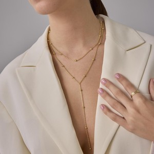 高品質のヨーロッパとアメリカのクロスボーダーファッションシンプルなY字型ネックレス多用途気質タッセルビーズ多層鎖骨チェストチェーン