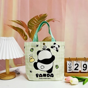 2025 新パンダキャンバスバッグ女子学生ポータブル仕事小さなハンドキャリーランチバッグキャンバスバッグギフトバッグ