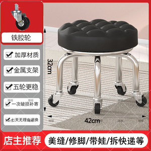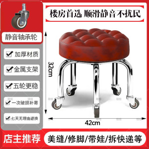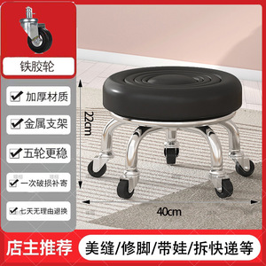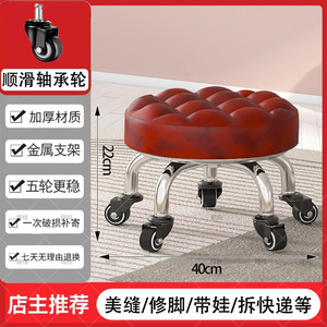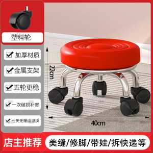 万向轮小矮凳子家用圆凳美缝修脚儿童学步凳足浴小板凳带滑轮静音